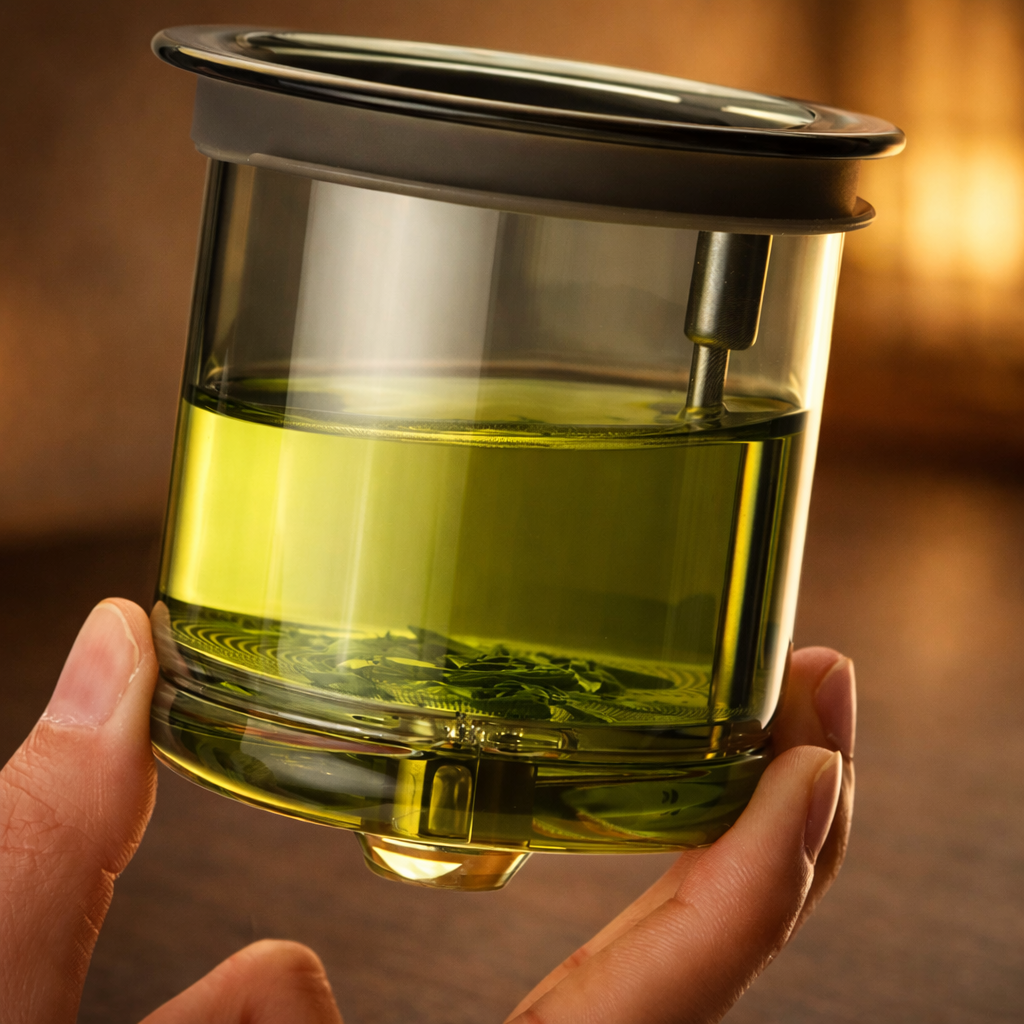 Nie potrzebujesz sitka, łyżeczki ani drugiego naczynia. Wystarczy przekręcić wieczko, a napar sam oddzieli się od liści. Prościej się nie da — idealne parzenie bez wysiłku.